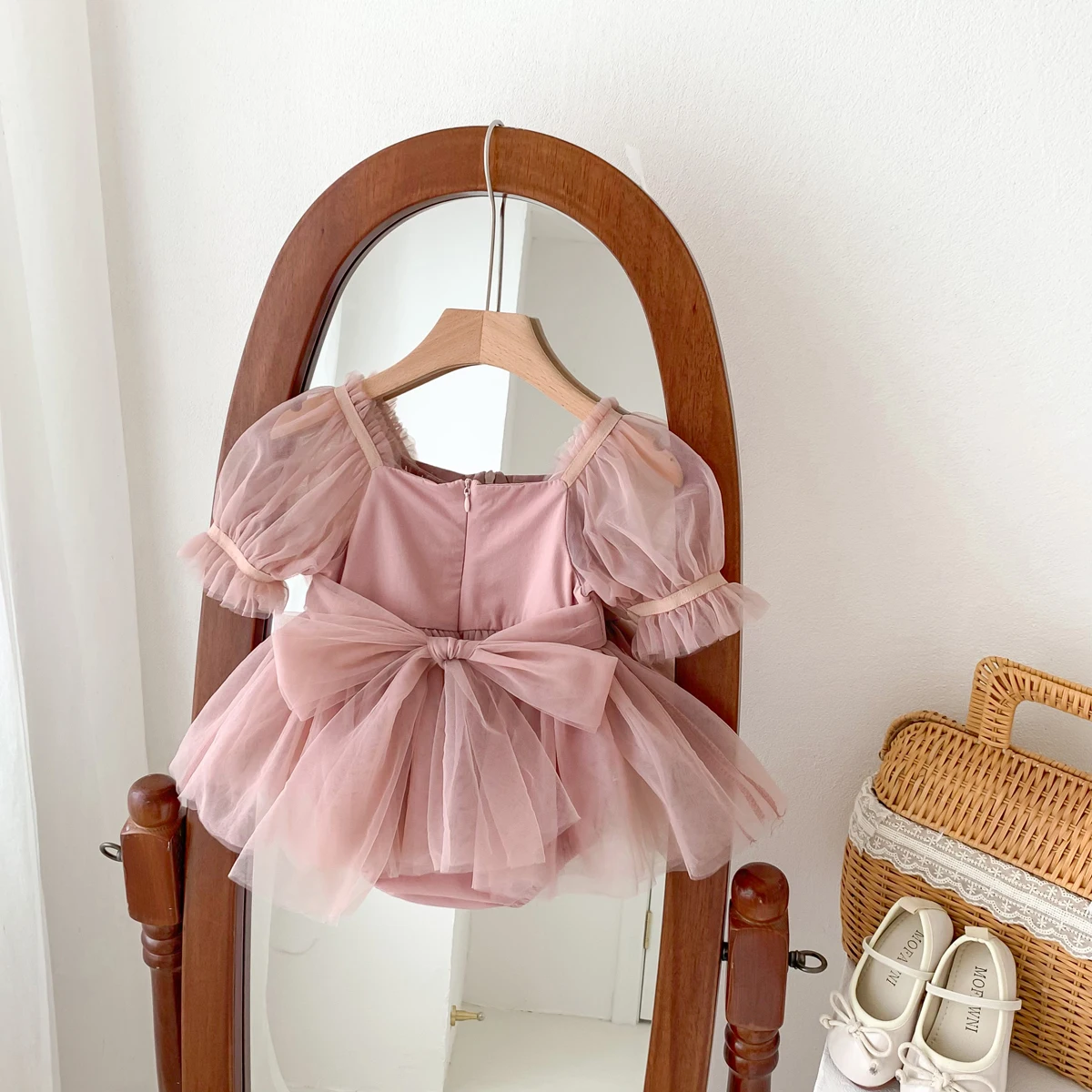 The fabric is very soft, the lace and spring are perfect for a baby. I ordered the RN size and it is suitable, the color is pink stick. Excellent terminations.