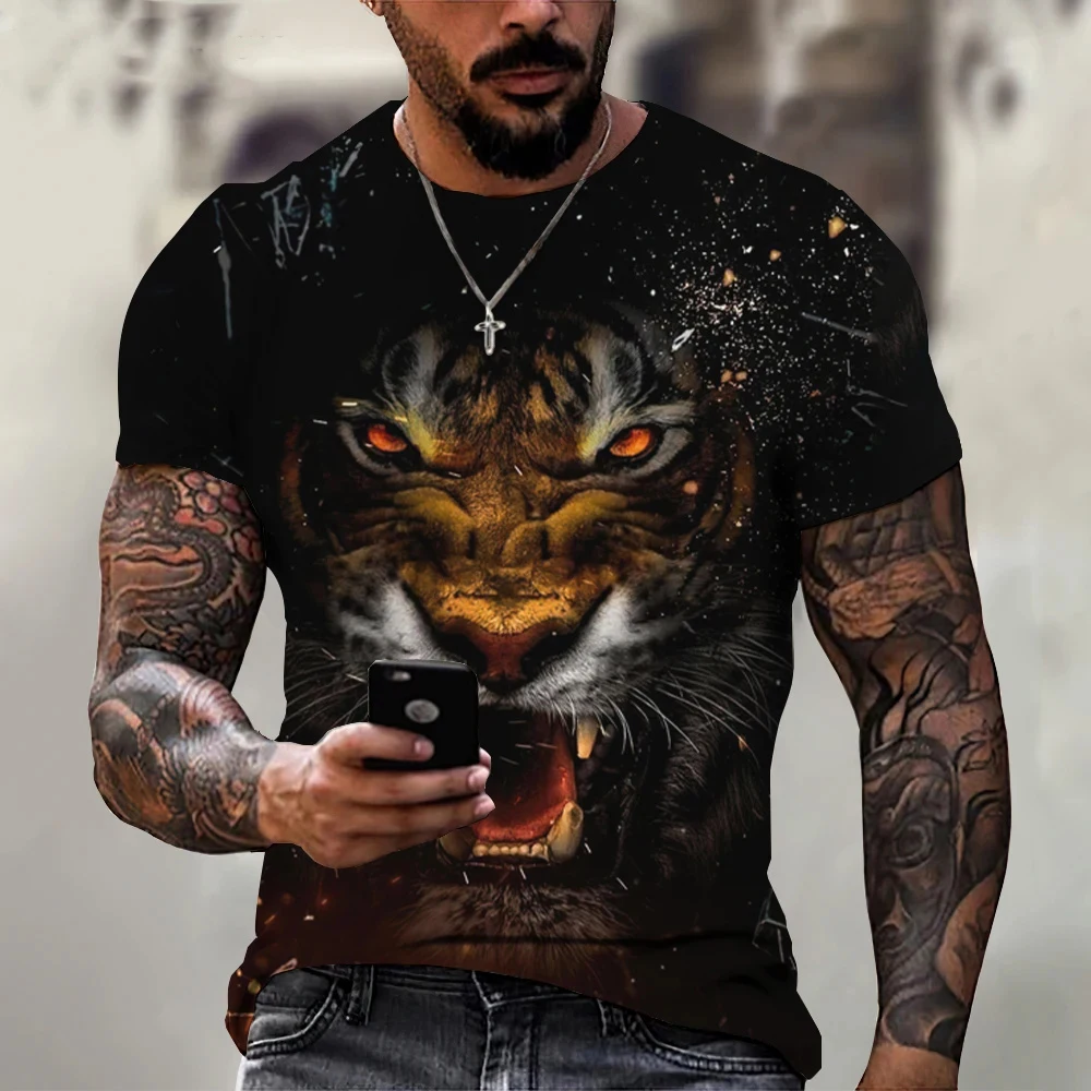 Summer Casual Retro T-Shirt Animal Lion 3D Print Fashion Short Sleeve Tops Oversized Clothing Sweatshirt Fitness T Shirt for Men