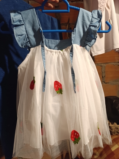 Is really beautiful, much more than I expected, strawberries are embroidered. A really beautiful dress And the very fast delivery, much less time than was estimated. I will certainly buy again