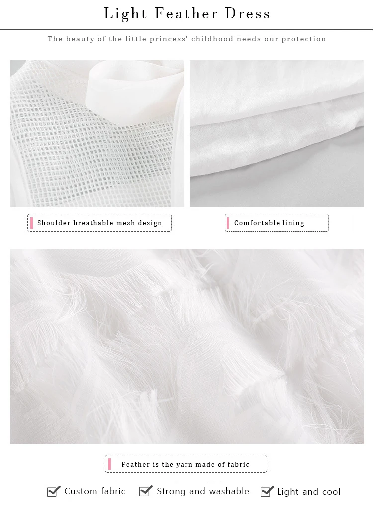 Summer Girl Dress For Very Elegant Party Trend Feather Princess Evening Dress Young Children Clothes 3 To 13 Years Kids Costume