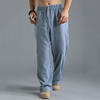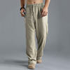 Summer Men Solid Color Linen Multi-pocket Straight Casual Pants Plus Large Size Breathable Comfortable Drawstring Loose Trousers