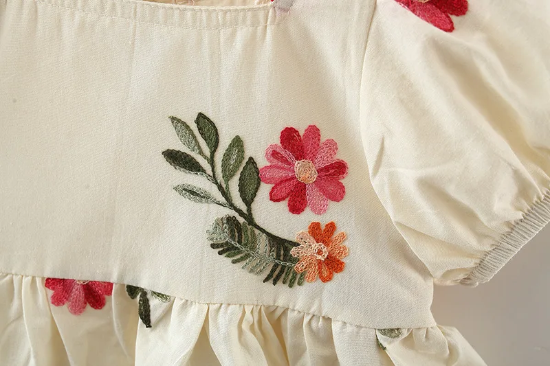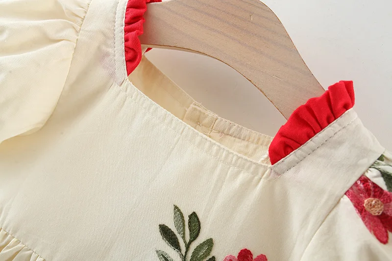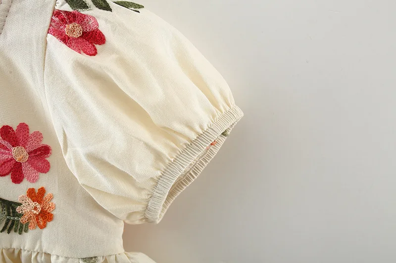 Summer New Girl Dress Cute Bubble Sleeves Embroidered Cotton Skirt Comfortable Children’s Clothing Suitable for 0-3 Years Old