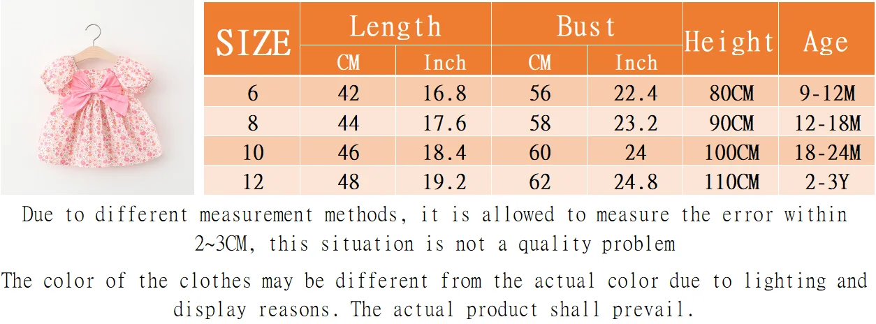 Size 8 —— Length: 44cm —– Bust: 58cm —– appropriate height: 80-90cm —– appropriate weight: 11-13kg —— Recommended age: 12-18month