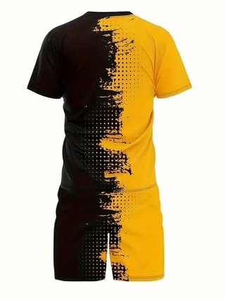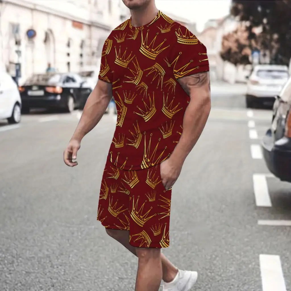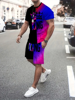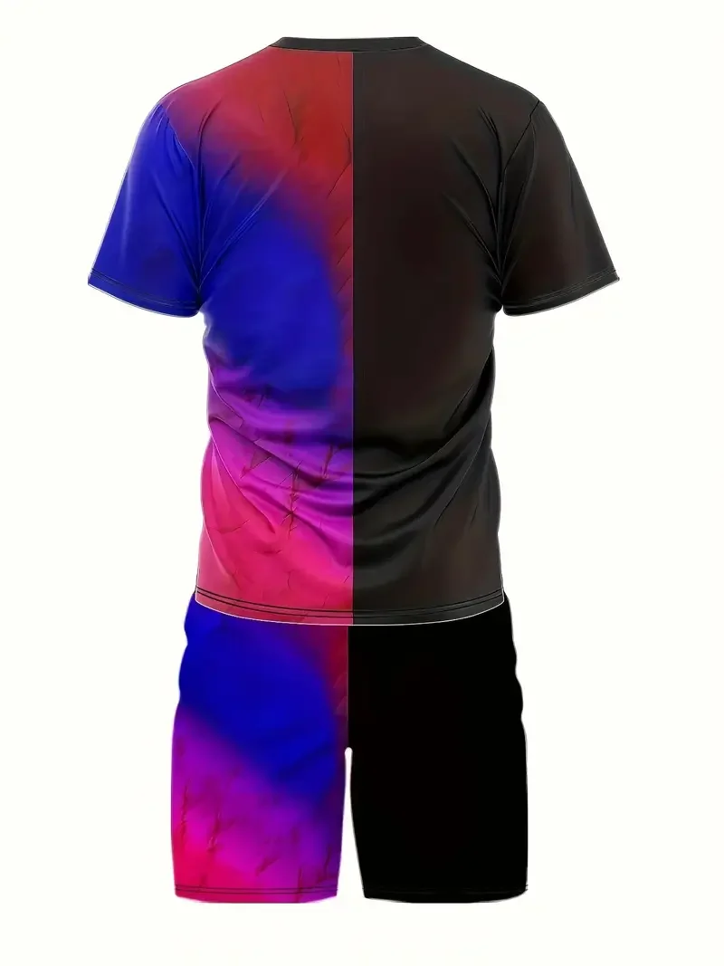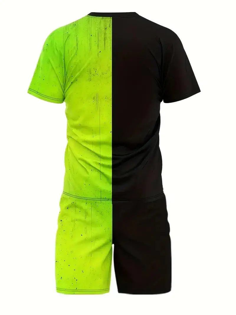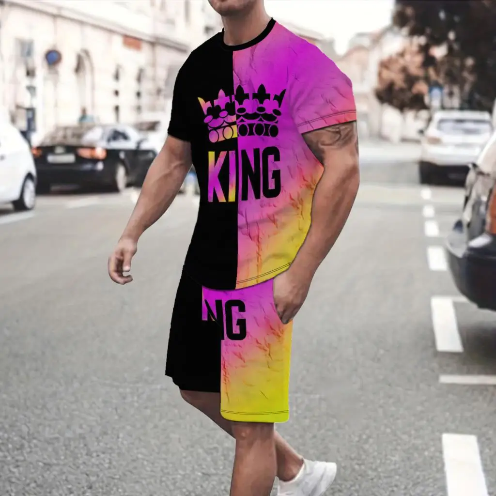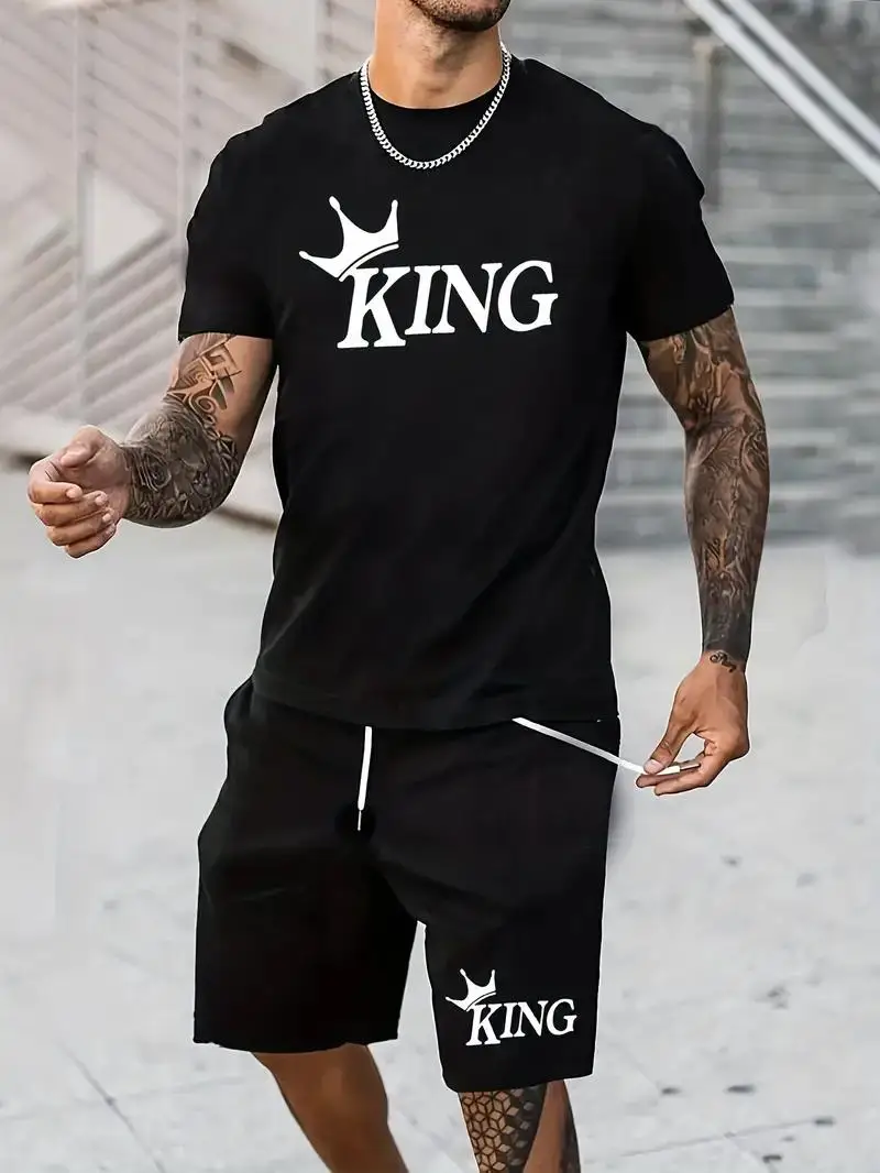Summer new men’s short sleeved set, casual street clothing, two-piece T-shirt+shorts fashion men’s clothing, 2024, sizes S to 2