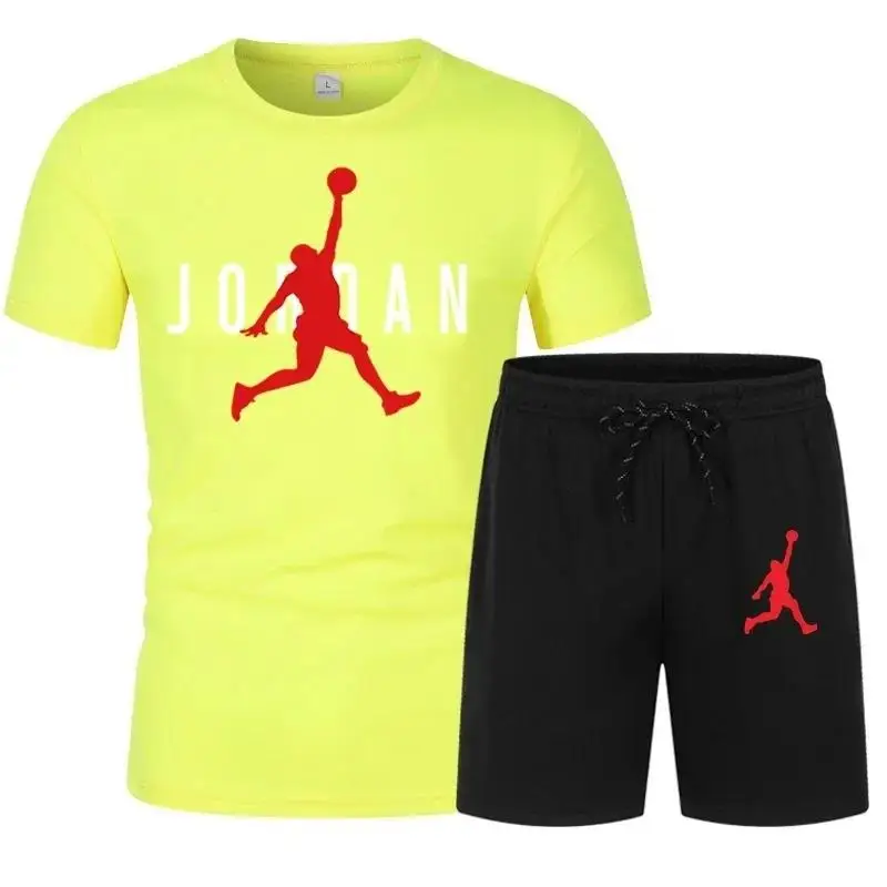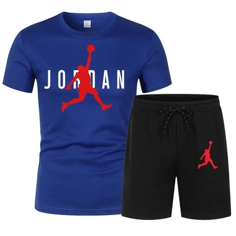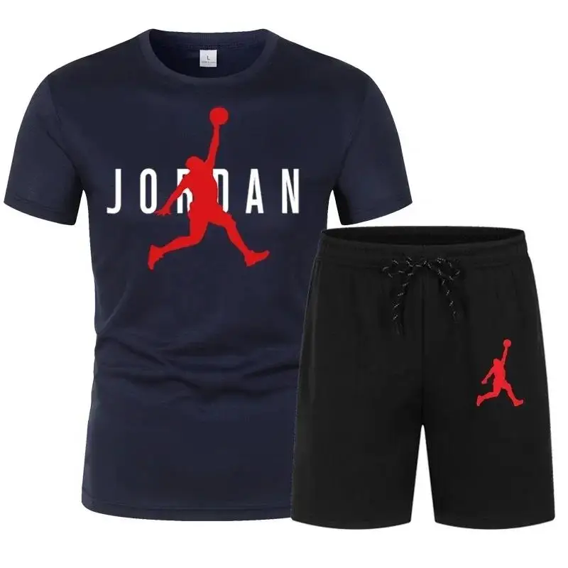 Summer Popular Men’s T-shirt+shorts Suit Men Sports Printing Casual Fashion Short-sleeved T-shirt Set Joggers