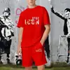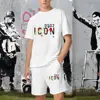 Summer Solid Color Letter Print Tracksuit Men Short Sleeve T Shirt Set Casual 2 Piece Outfits Male Sportwear Clothes for Man