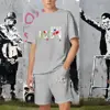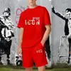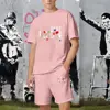 Summer Solid Color Letter Print Tracksuit Men Short Sleeve T Shirt Set Casual 2 Piece Outfits Male Sportwear Clothes for Man