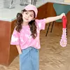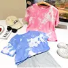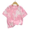 Summer Tie Dye Pink Short Sleeved Fashionable T-shirt for Aged 3-12 Years Children’s Clothing Girls Tops Boys Tee Kids Clothes