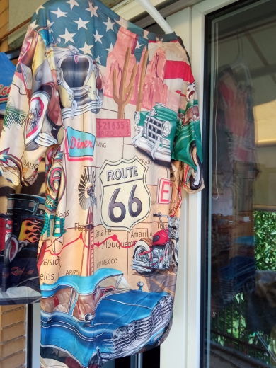 the medium size came up like a small medium but is stretchy material, cool thin silky material, print is on front and back of shirt.