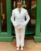 Summer White Linen Double Breasted Elegant Men Suit Smart Casual Slim Fit Blazers Hombre High Quality Custom 2 Piece Set Costume