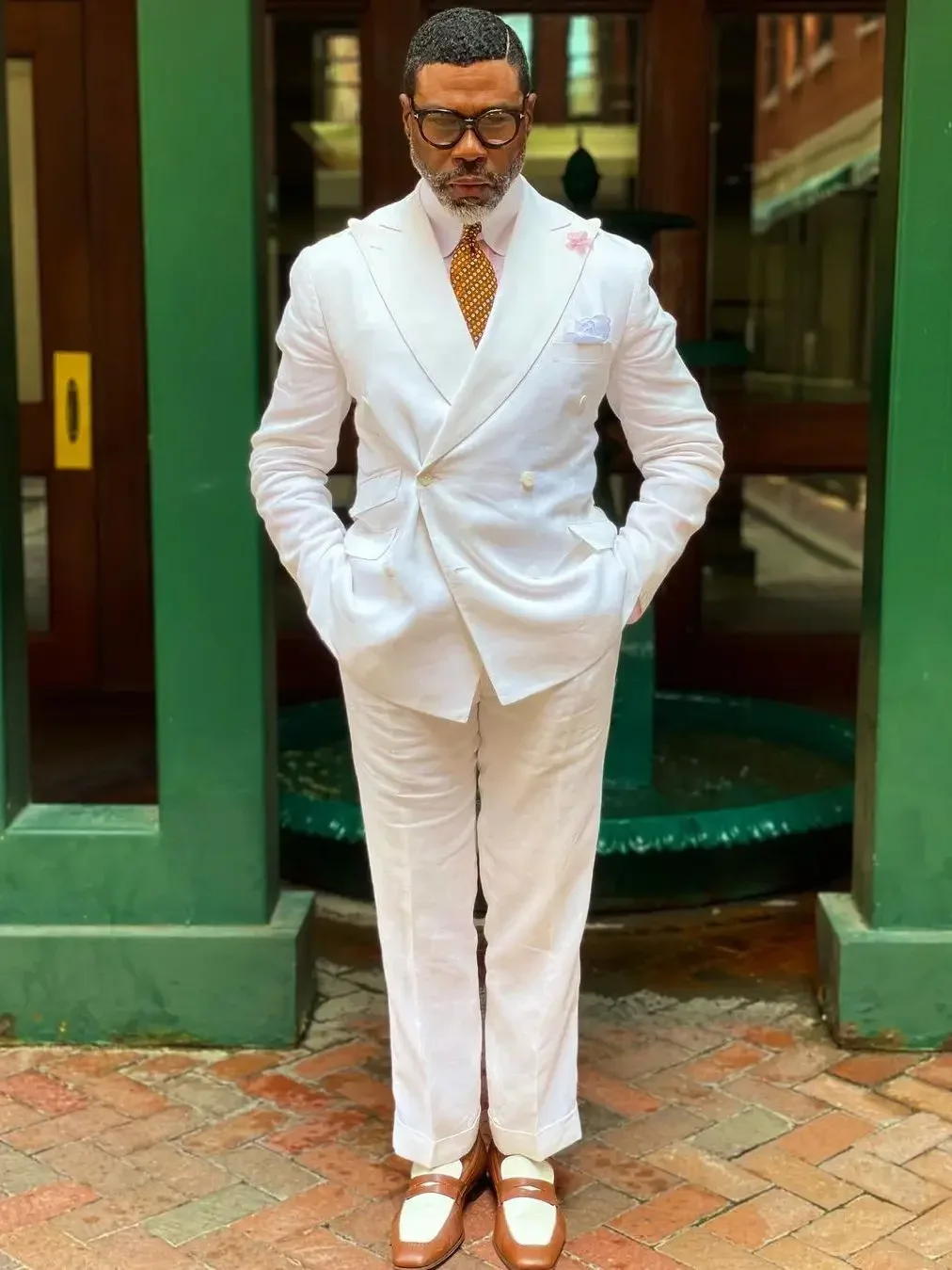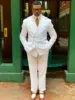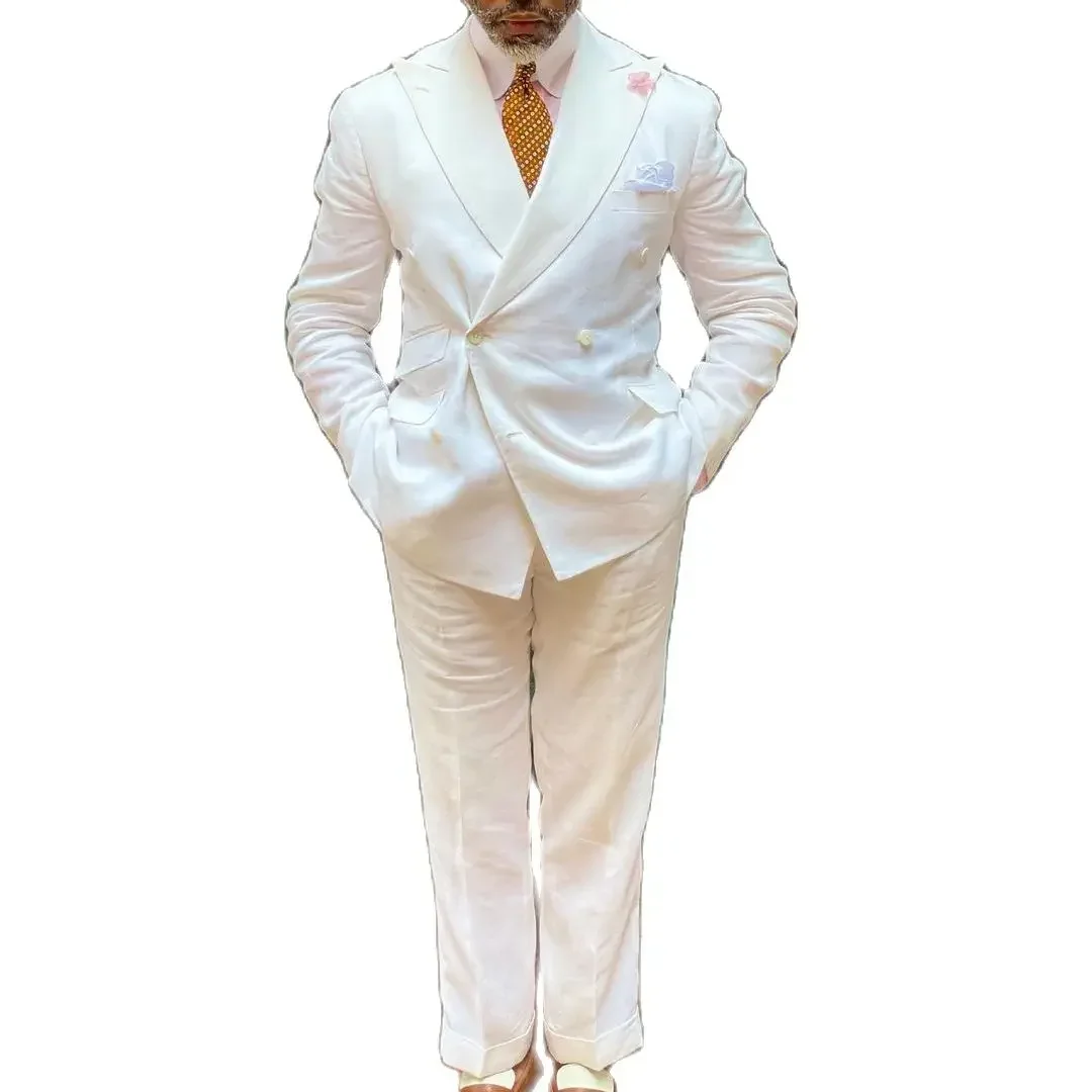 Summer White Linen Double Breasted Elegant Men Suit Smart Casual Slim Fit Blazers Hombre High Quality Custom 2 Piece Set Costume