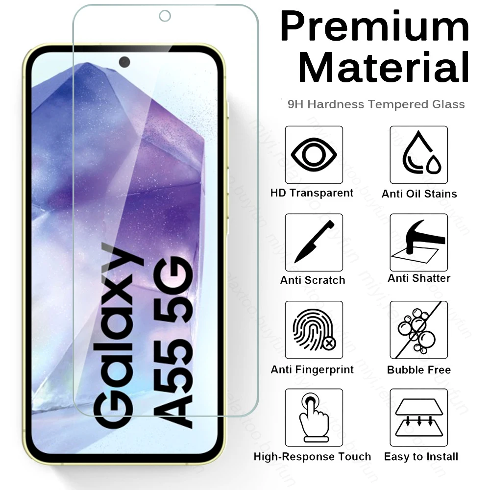 Sumsung A55 5G Case 3Pcs HD 9H Tempered Glass Screen Protector For Samsung Galaxy A55 5G Samung A 55 55A 2024 SM-A556B/DSN 6.6″