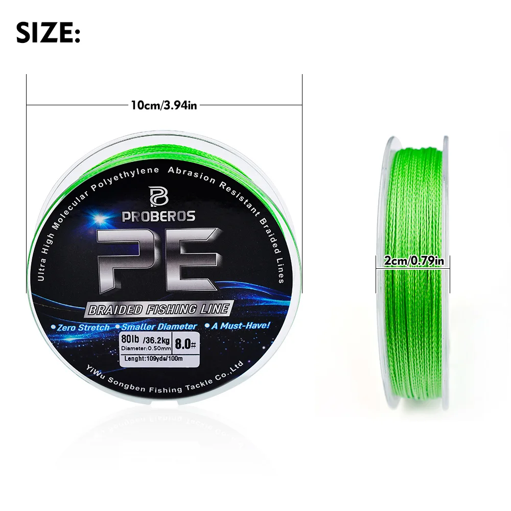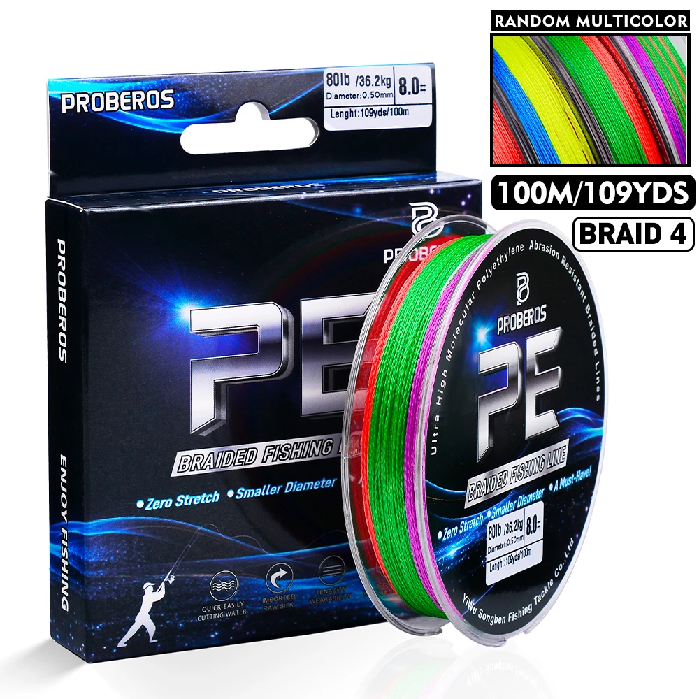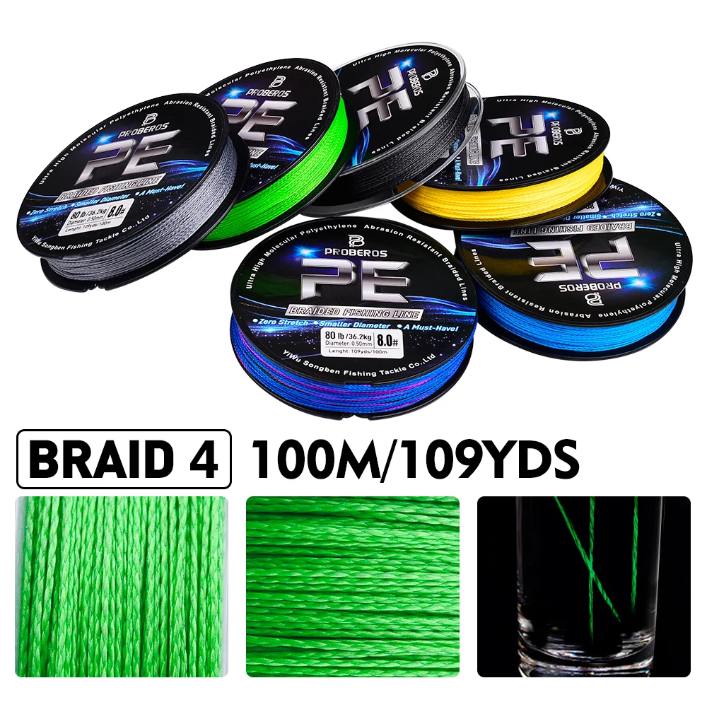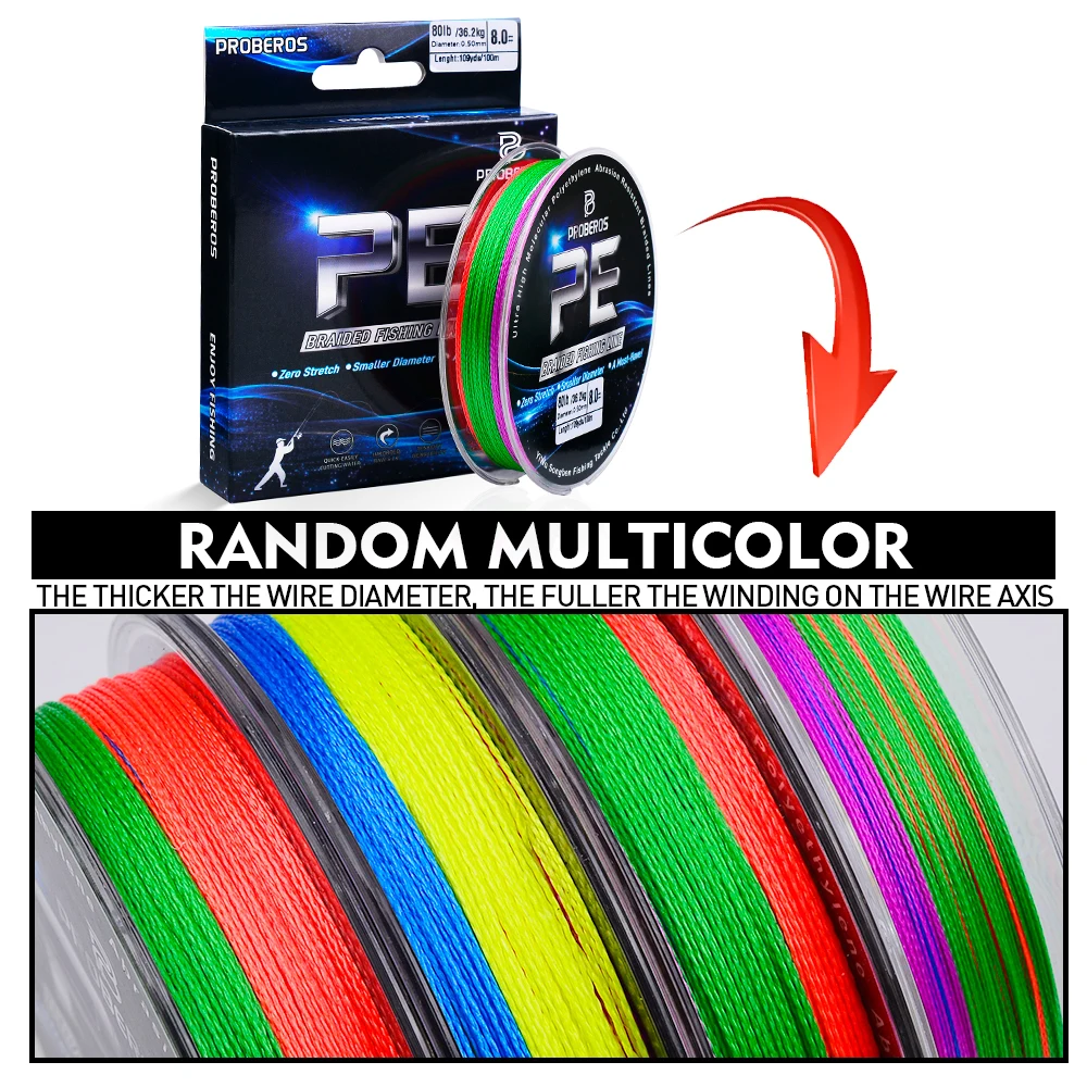 Super Strong Fishing Line -100m/328ft 4-Strand Multifilament PE Anti-abrasion Braided Line,6 colors Available in 6-80 LB Options