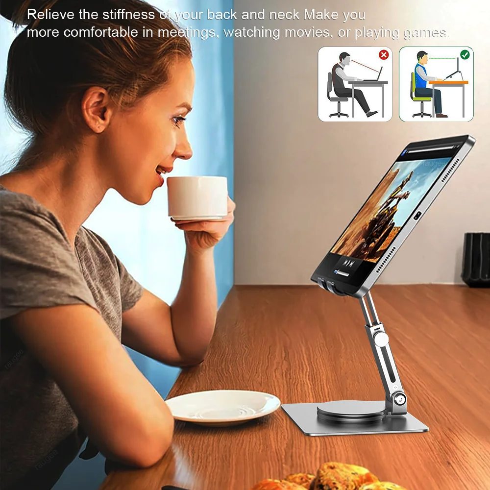 • 360° Rotating :The stand can rotate 360 degrees, allowing you to adjust the angle of your tablet for optimal viewing.