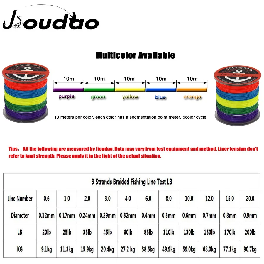 Tips: All the above are measured by JIOUDAO. Data may vary from test equipment and method. Liner tension don’t refer to knot strength. Please apply it in the light of the actual situation.