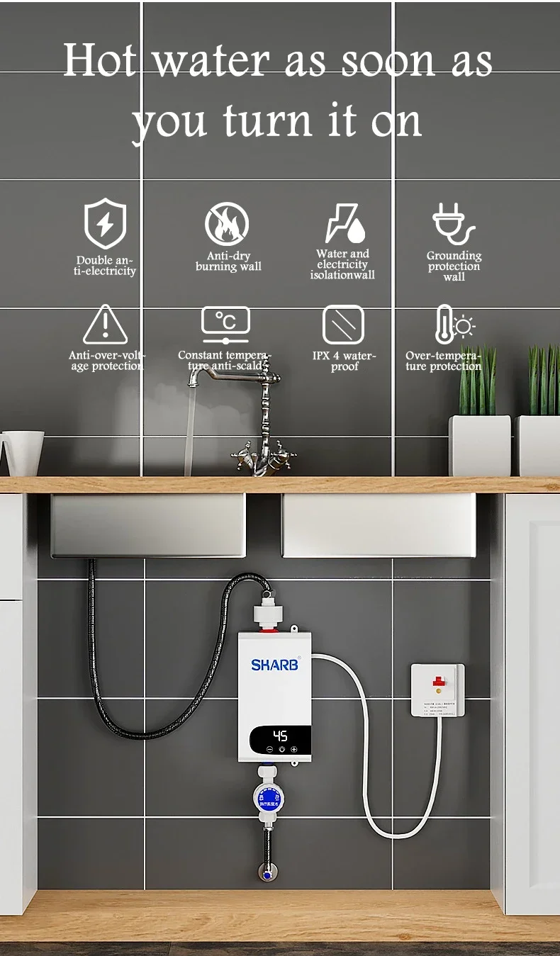 ✅Safety Insurance: There is tankless water heater a leak -proof protection internally. There is a problem with the automatic detection problem. If there is a problem with the problem, Tankless water heater will be automatically disconnected and shut down. The tankless water heater material is waterproof and non flammable.