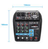 Product descriptionThe mixer is a multi-purpose 4-channel mixer with a sound card that can be meet users of home music production, webcast, K song and other needs.FeaturesThe mixer is equipped with input gain and high bass adjustment, built-in 48V phantom power supply for condenser microphone direct power supply, high-definition headset output port, MP3 broadcast, device with a sound card can be directly connected to the PC.Mixer compact, lightweight, can be directly connected to the PC’s USB port power supply,No additional power, can be connected to the computer through the USB power supply to run, eliminating the need forWith the trouble with an external adapter, you can also use the mobile power or USB AC / DC.The adapter is powered by the adapter.