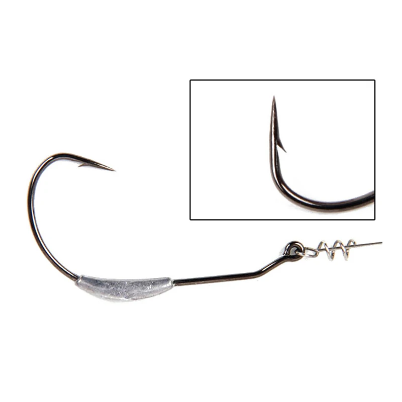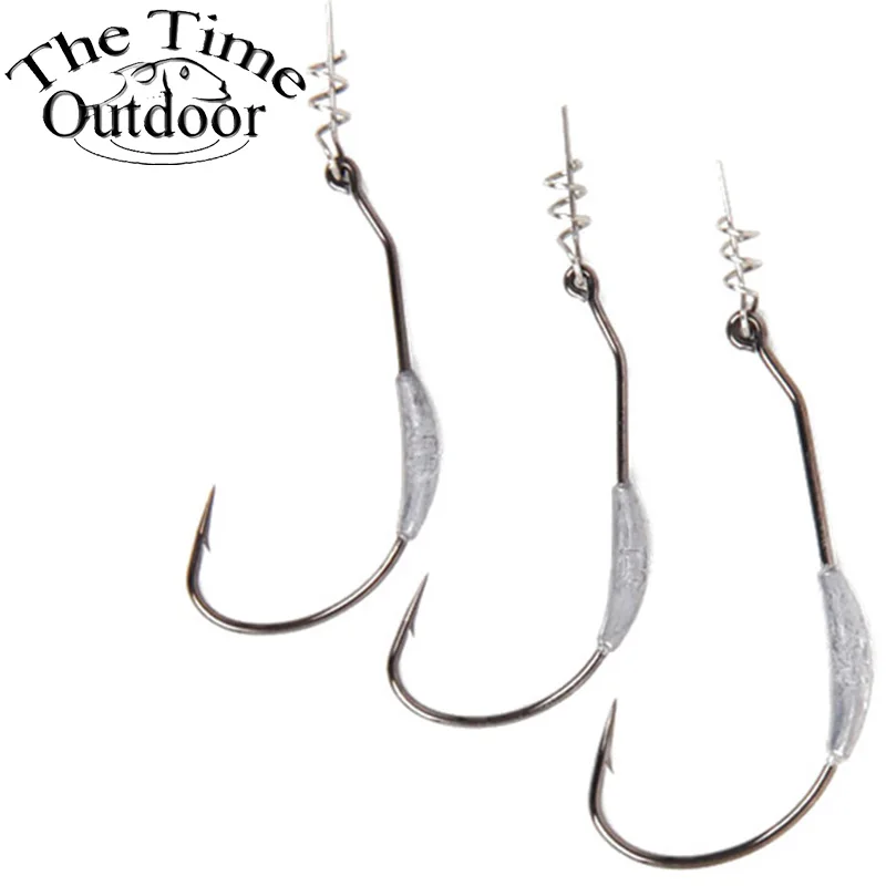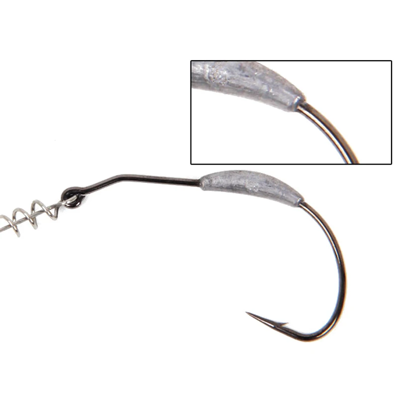 The Time 5pcs Weighted Worm Hook Carbon Steel Offset Curved Shank Barb Wide Gap Fishing Hooks for Soft Plastic Baits Lure Bass