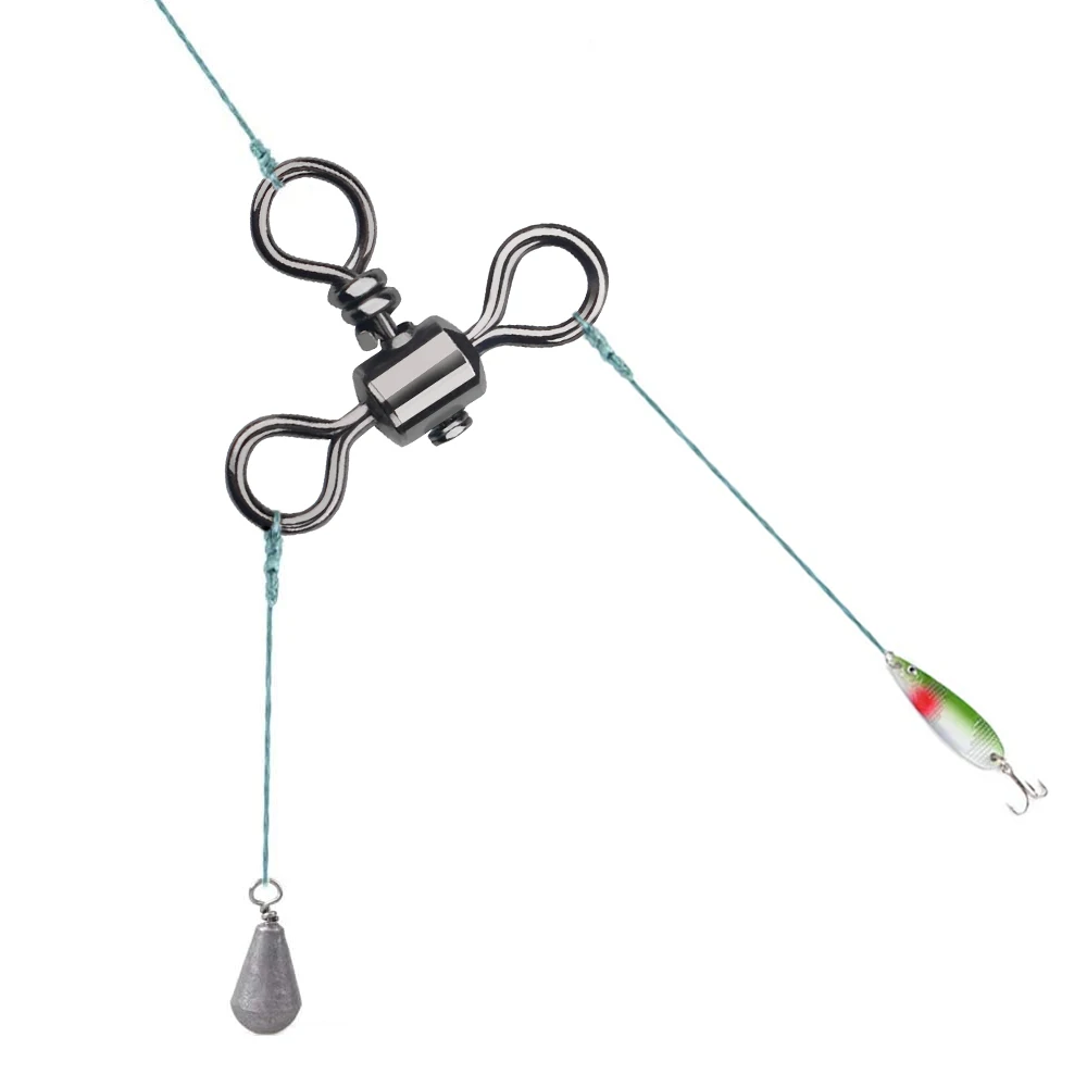 TIANNSII 30pcs Stainless Steel Cross Line Rolling Fishing Swivel 3 Way Fishing Line Hook Connector Carp Fishing Accessories Tool