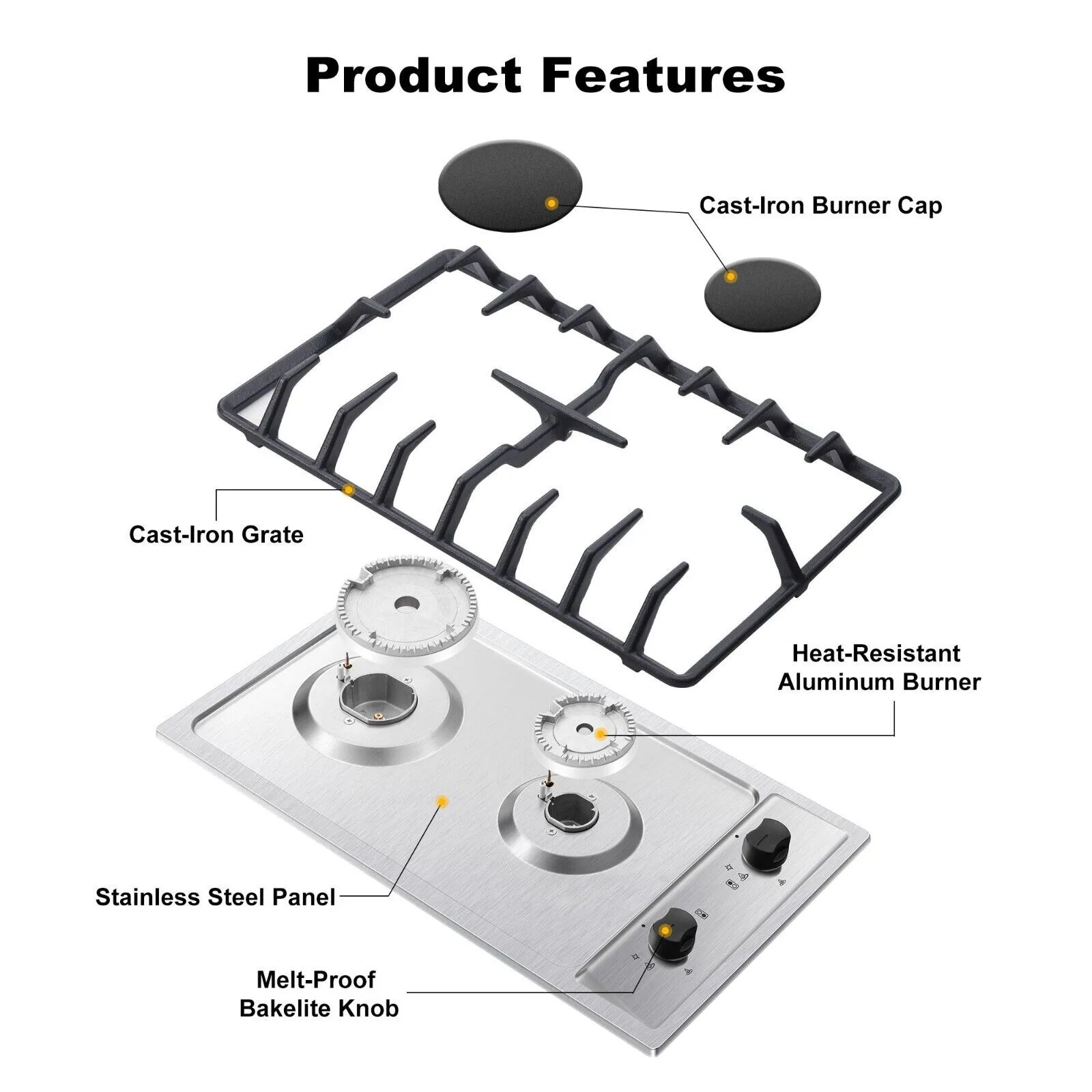 Made of high-quality material, this propane cooktop assure you poweful and stable flames. Total 16,914 BTU to meet the cooking needs of the whole family.