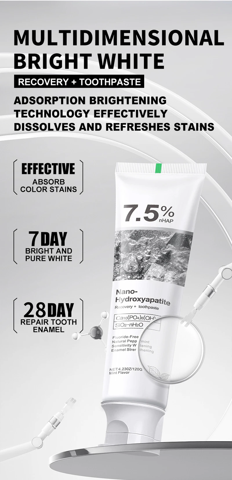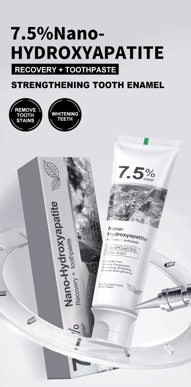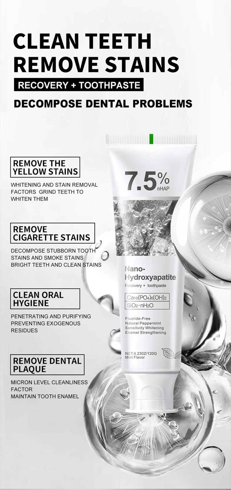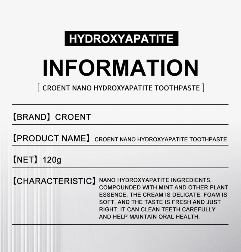 Toothpaste 7.5% Nano-hydroxyapatite Toothpaste New Oral Cleaning Toothpaste Refreshing Breath Removing Tooth Stains Adult Use