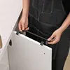 Hangs over kitchen cabinets for hassle-free installation with no hardware or tools required; Fits over most cabinet doors and drawers; Perfect for using inside cabinet and cupboard doors for out of the way, discreet storage without the worry of creating holes in the door.