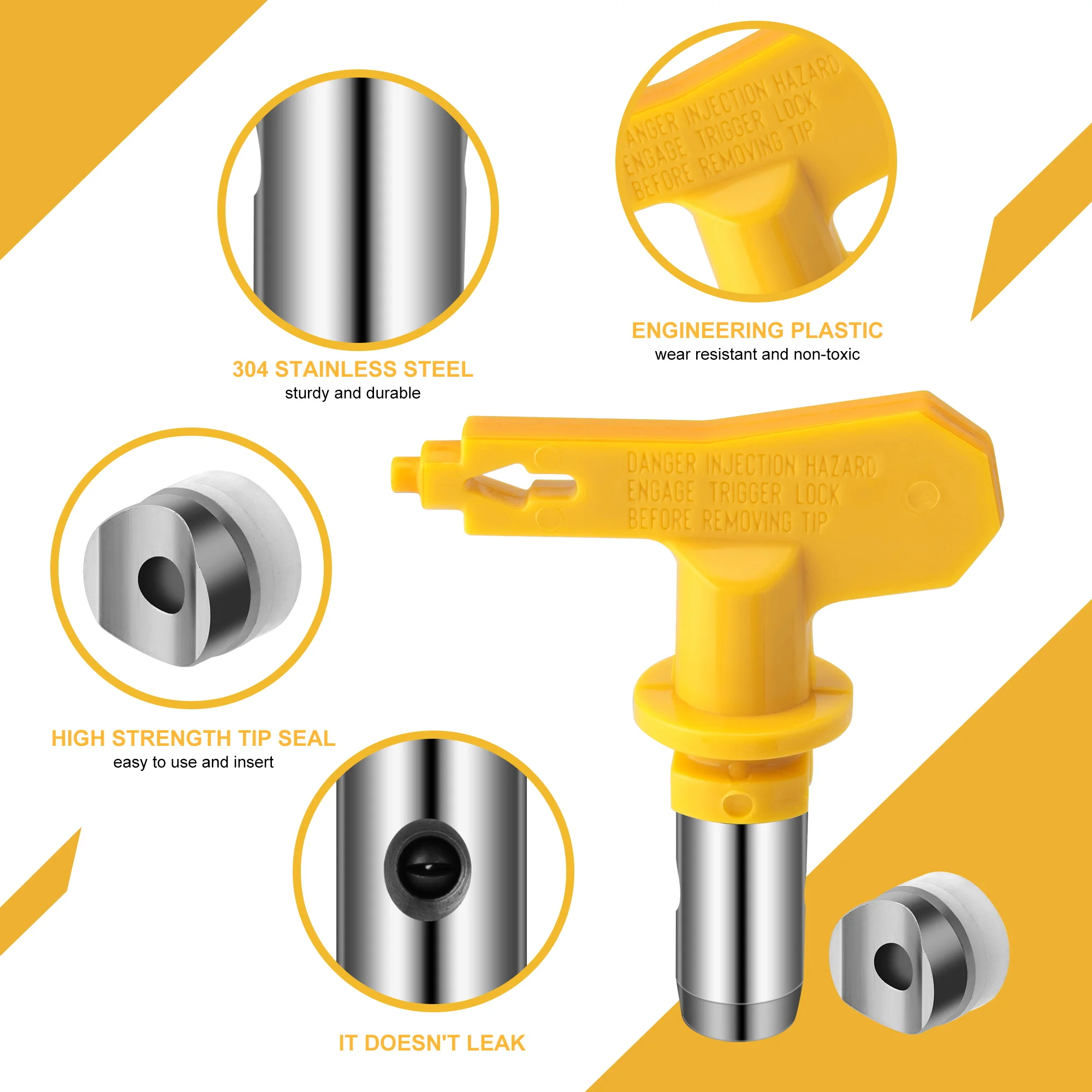 Reversible 517 Spray Tip:This stainless steel tip can be effortlessly installed on any spray device without tools. Press it in a reversible position to avoid clogging. Tip seal is made of stainless steel and nylon, tough, non-permeable, and easy to clean.