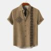 Trendy linen men’s casual party 2024 Hawaii short sleeved top new 3D pattern clothing high-end men’s social versatile men’s shir