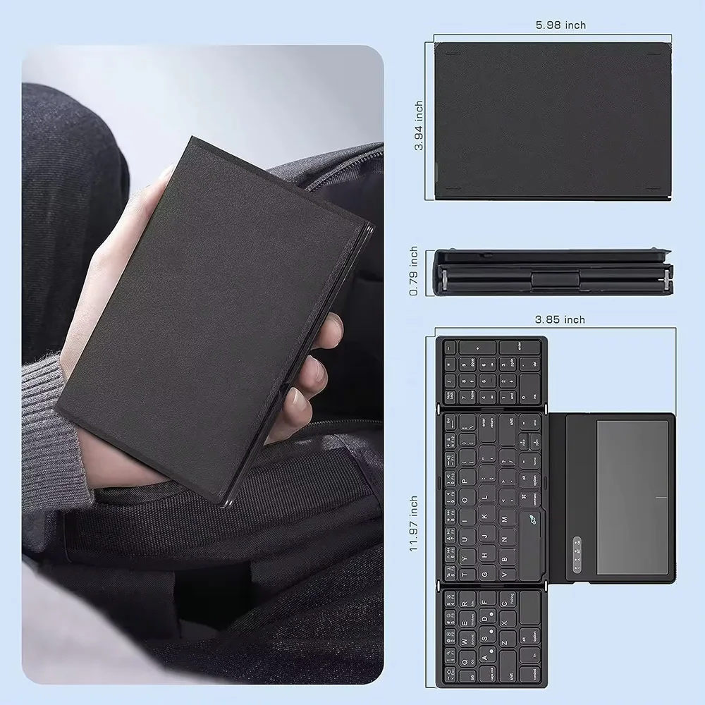 Tri-Fold Wireless Bluetooth-compatible Portable Keyboard with Touchpad Tablet Phone Computer External Universal Keyboard