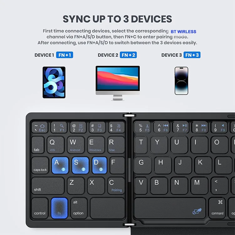 Keyboard tri-folding design, compact size, easy to carry on the go.