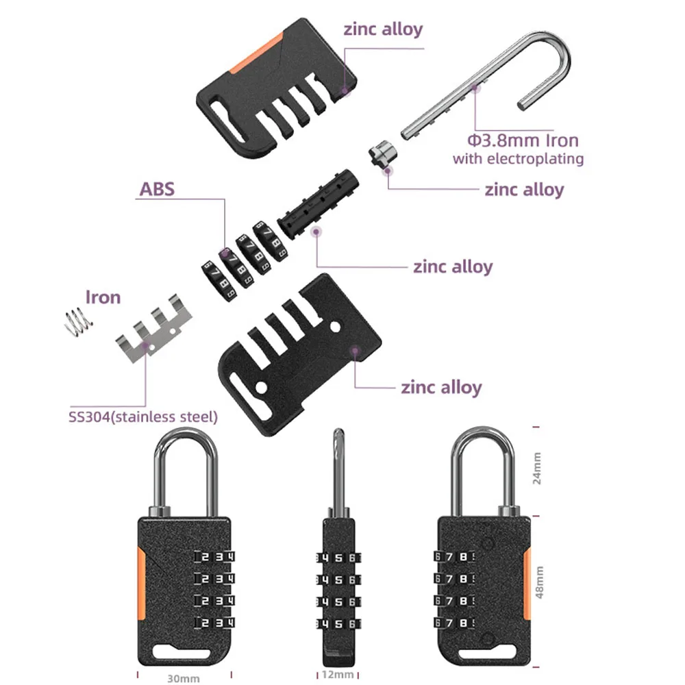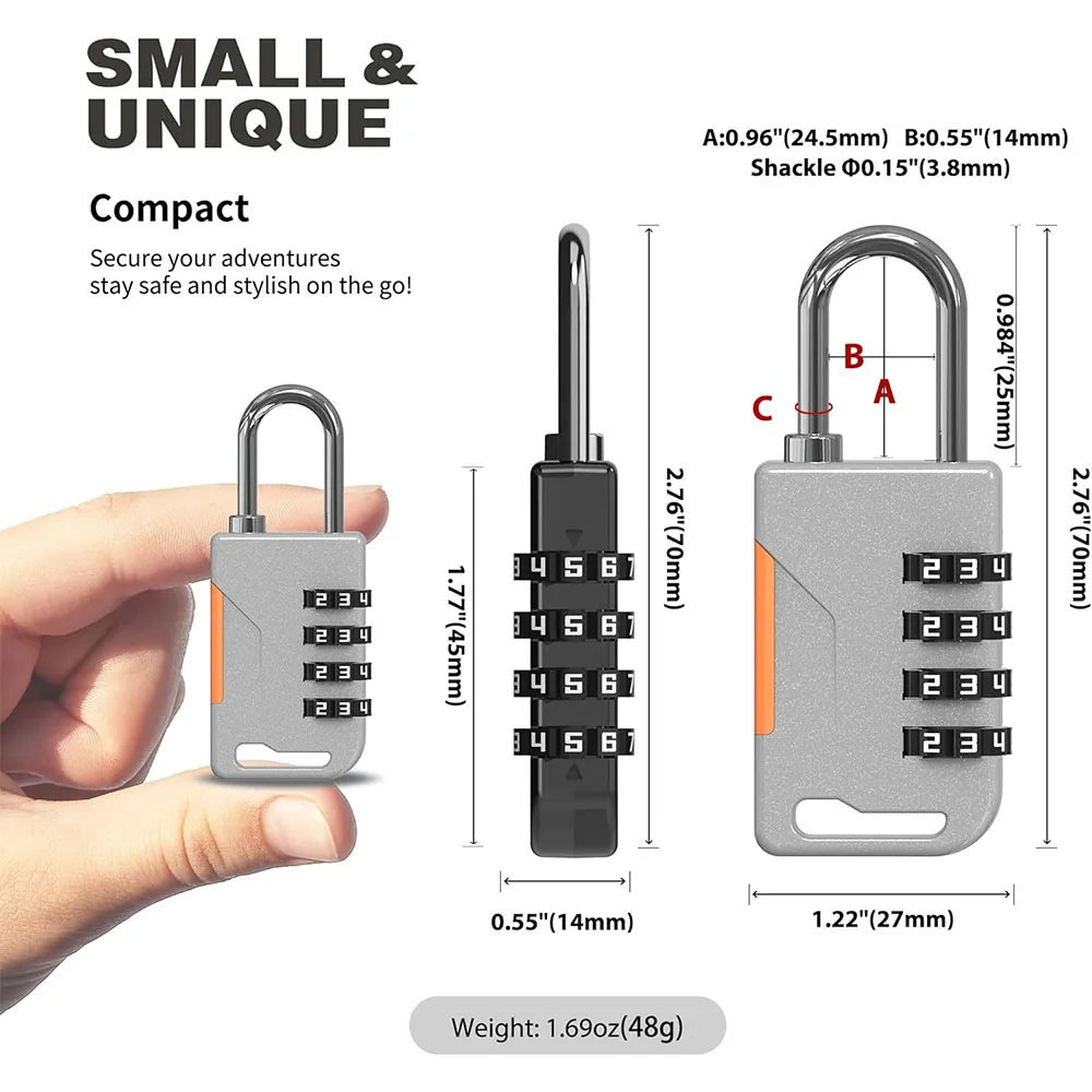 TSA 4 Digit Combination Lock Anti-theft Customs Password Lock Suitcase Luggage Coded Lock Cabinet Lock Contrast Color Padlock