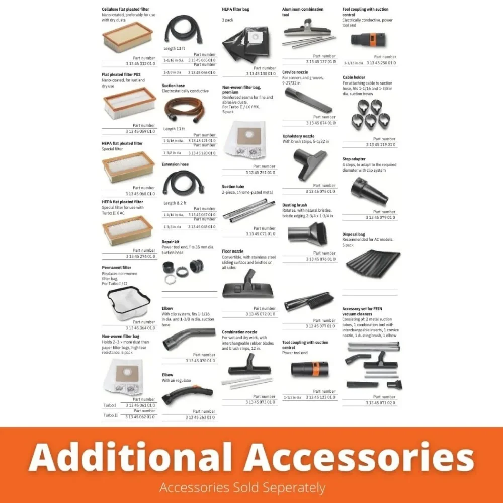 - Specifications – Boasts a high-performance turbine delivering 151 cfm (71 l/s) flow rate. Our vacuum cleaner operates at a low volume of only 66 dB (A) for quiet operation. Approved for dust class L, ensuring efficient dust management.
