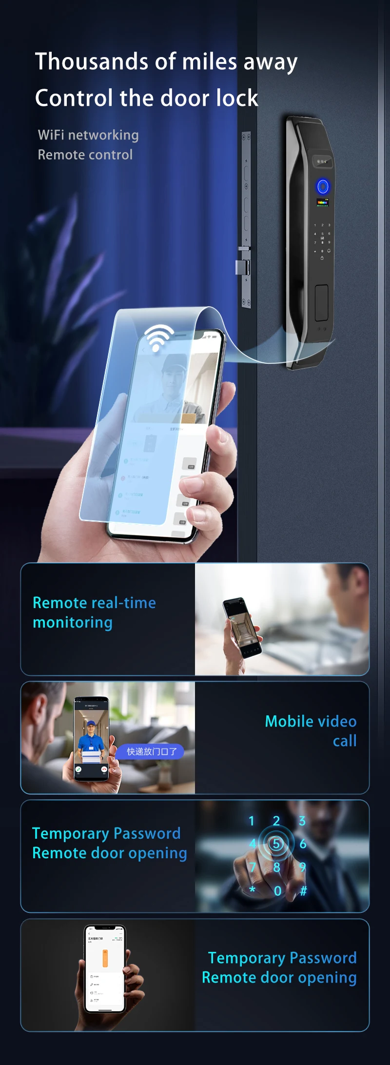 mobile applications can connect to the Internet through WiFi to view the monitoring image of the door lock camera at any time