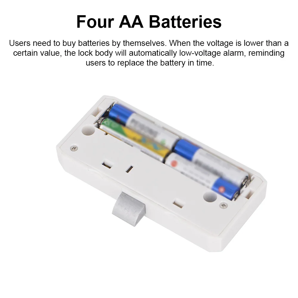 4.Users need to buy batteries by themselves. It is recommended that users use batteries well, so that the use time will be longer. When the voltage is lower than a certain value, the lock body will automatically low-voltage alarm, reminding users to replace the batteries in time.