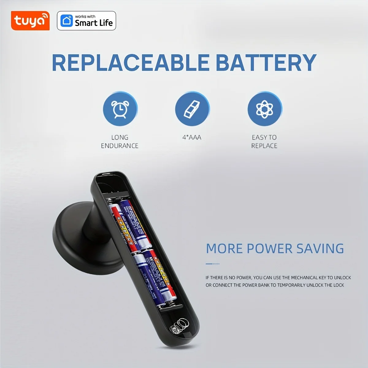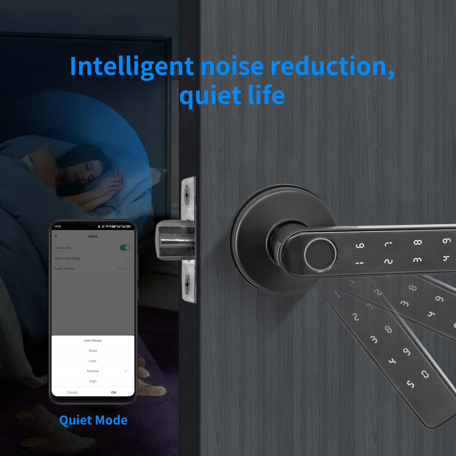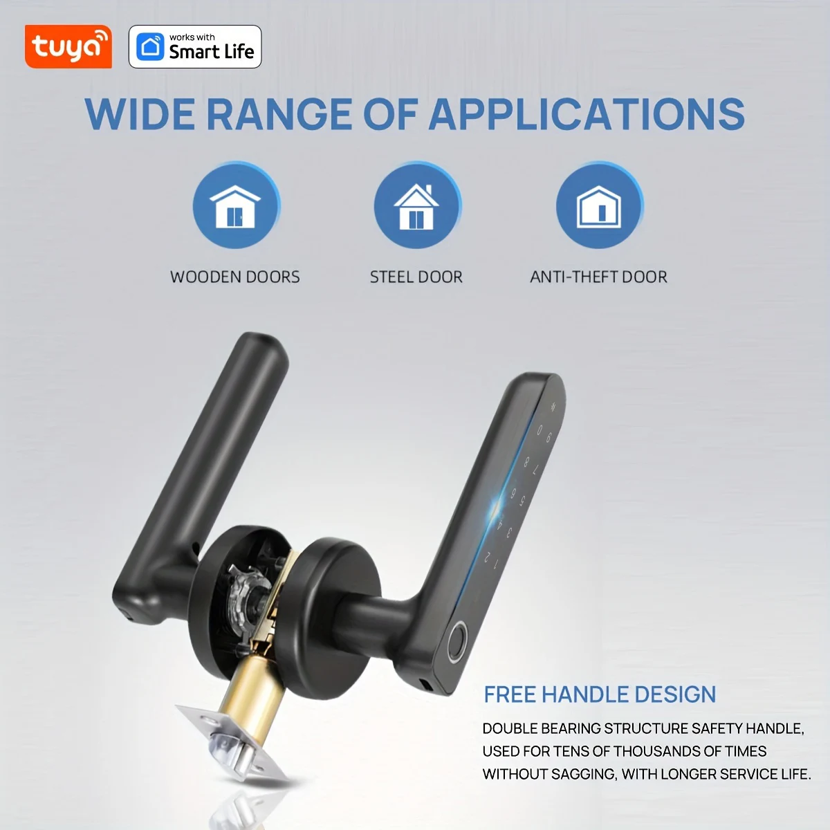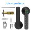 Smart Door Handle Lock – Offers four convenient unlocking methods: fast & secure fingerprint recognition, customizable 6-8-digit PIN codes, traditional mechanical key backup, and remote access via mobile app. Combines advanced security with smart home integration, ensuring keyless convenience and peace of mind. Durable, easy to install, and compatible with most doors.