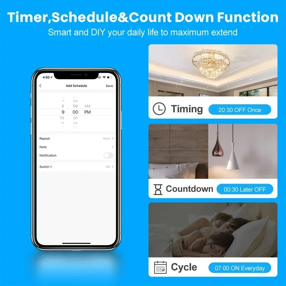 [ Timer,Schedule & Count Down Function ] -You can create schedule according to your personal requirement ,as well as timing and count down,smart and DIY your daily life to the maximum extend.