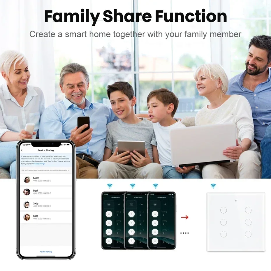 [ Family Share Function ] -You can share the switch to your family with the limited right,create a smart home together with your family member.