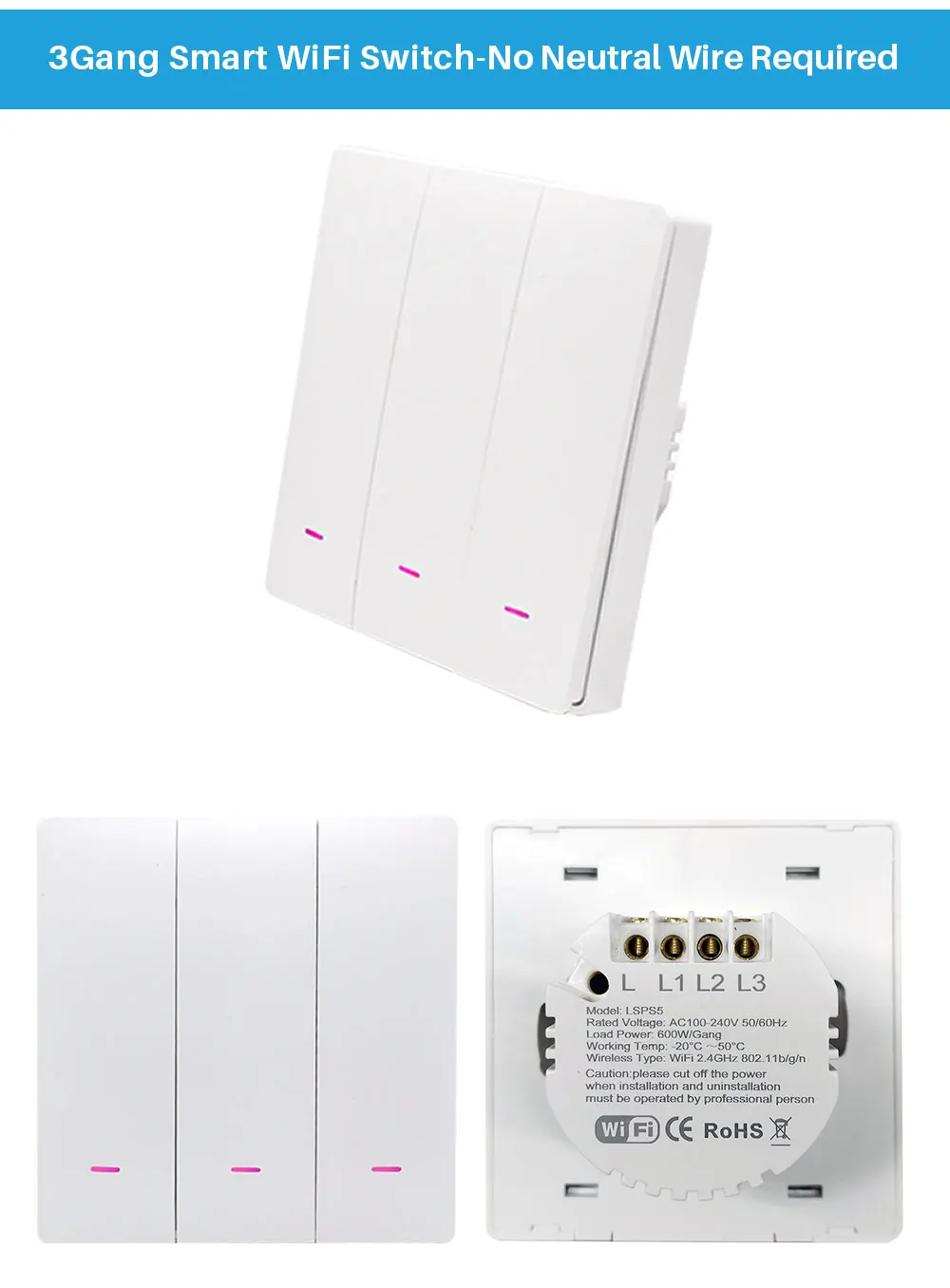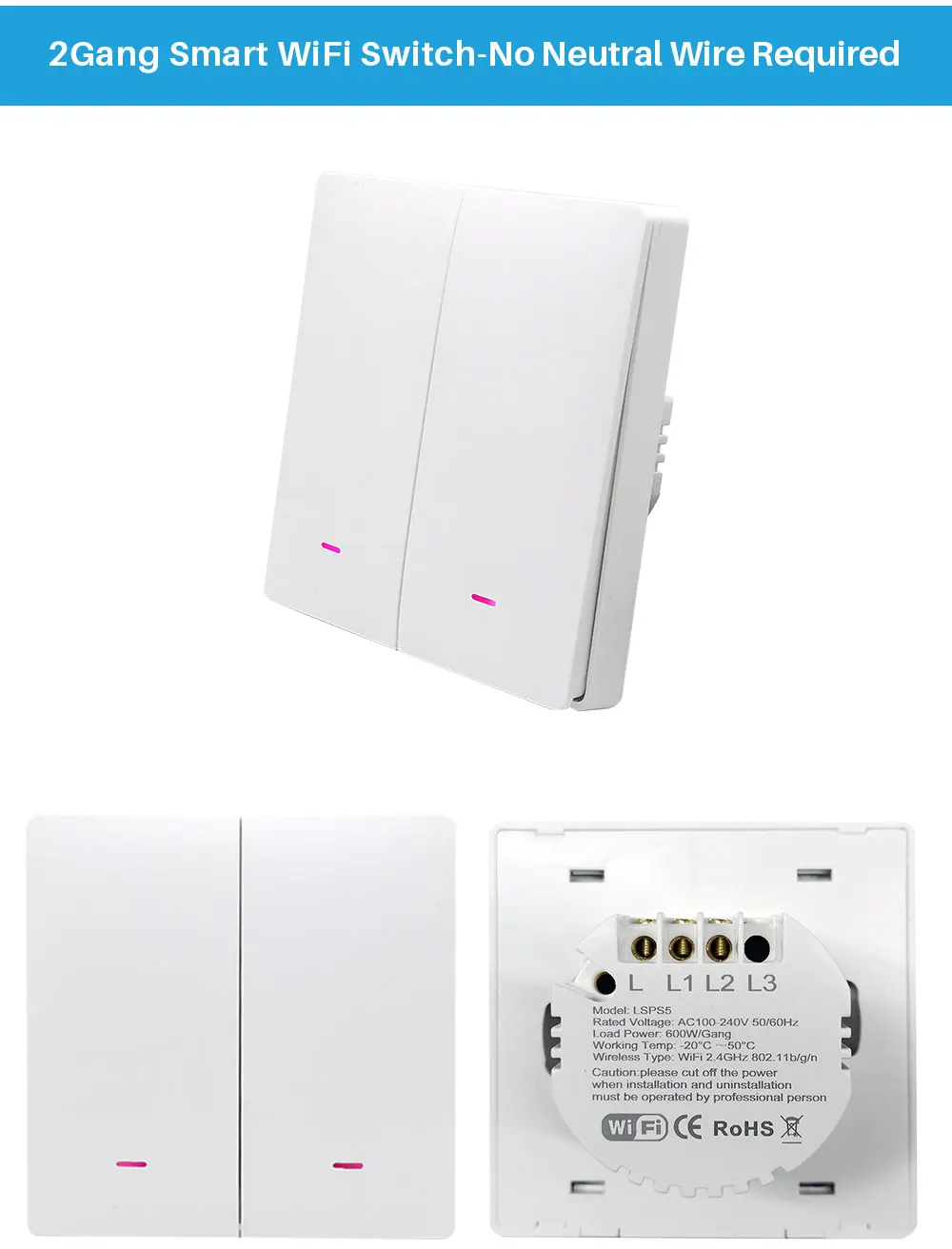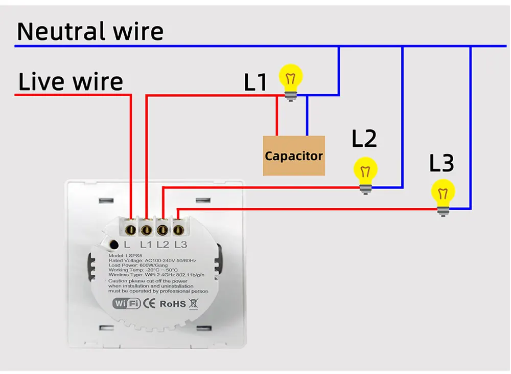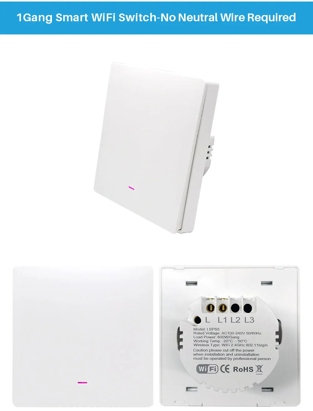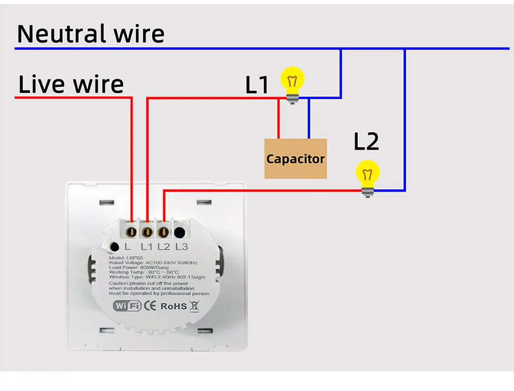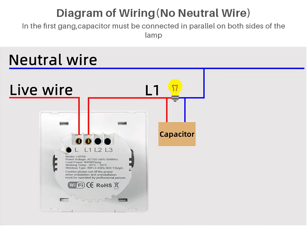 • No Neutral Wire Required :This switch does not require a neutral wire, making it easy to install and saving you money on electrical costs.