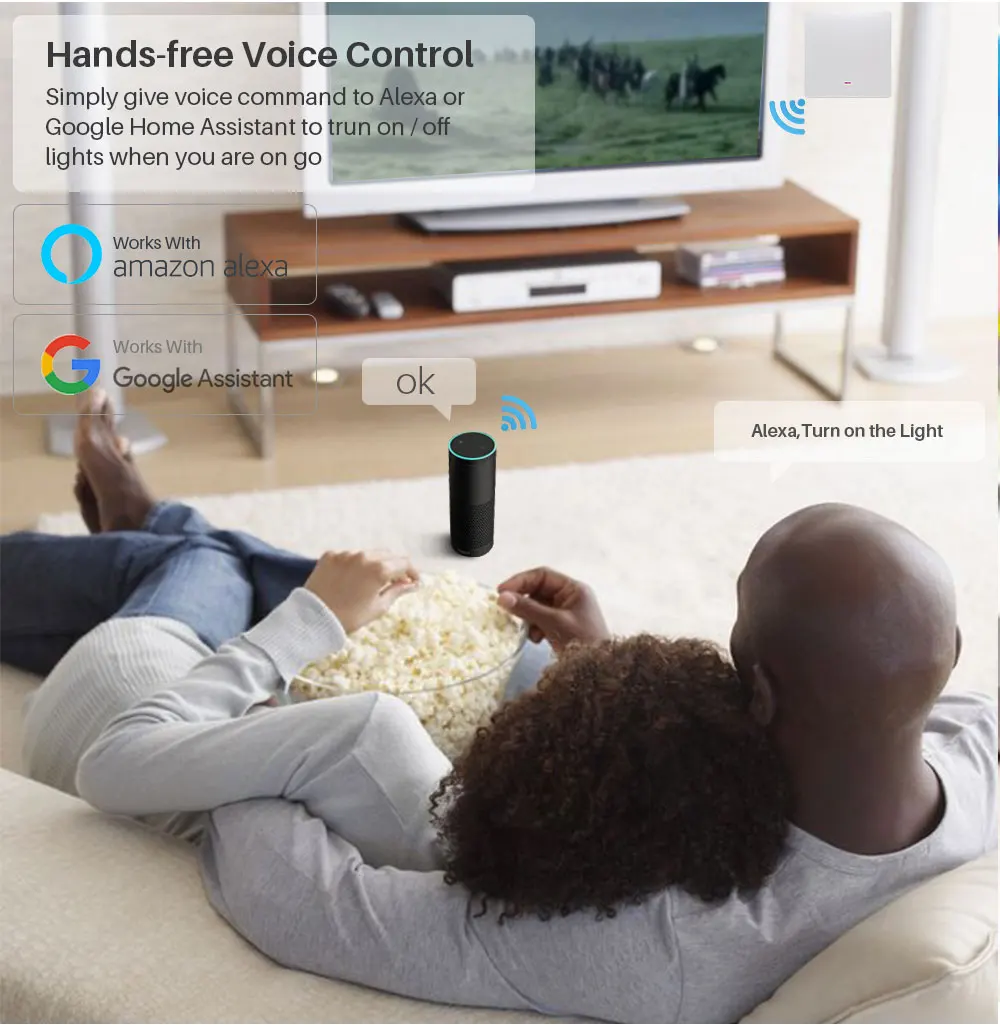 Perfectly Compatible with Alexa and Work with Google Home. Turn on/off lights with voice commands when your hands are full.