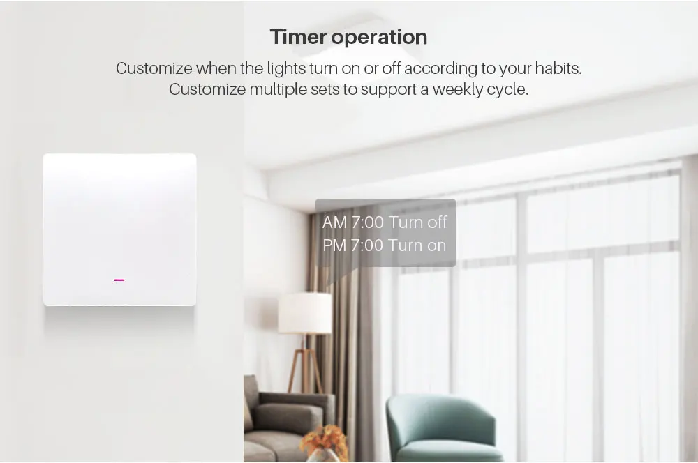 Setting a schedule or timer on/off your lights on night and morning, and then your will never go back to a dark house when you go back home at dusk. Moreover, you could quietly waked up by scheduled light on every morning.