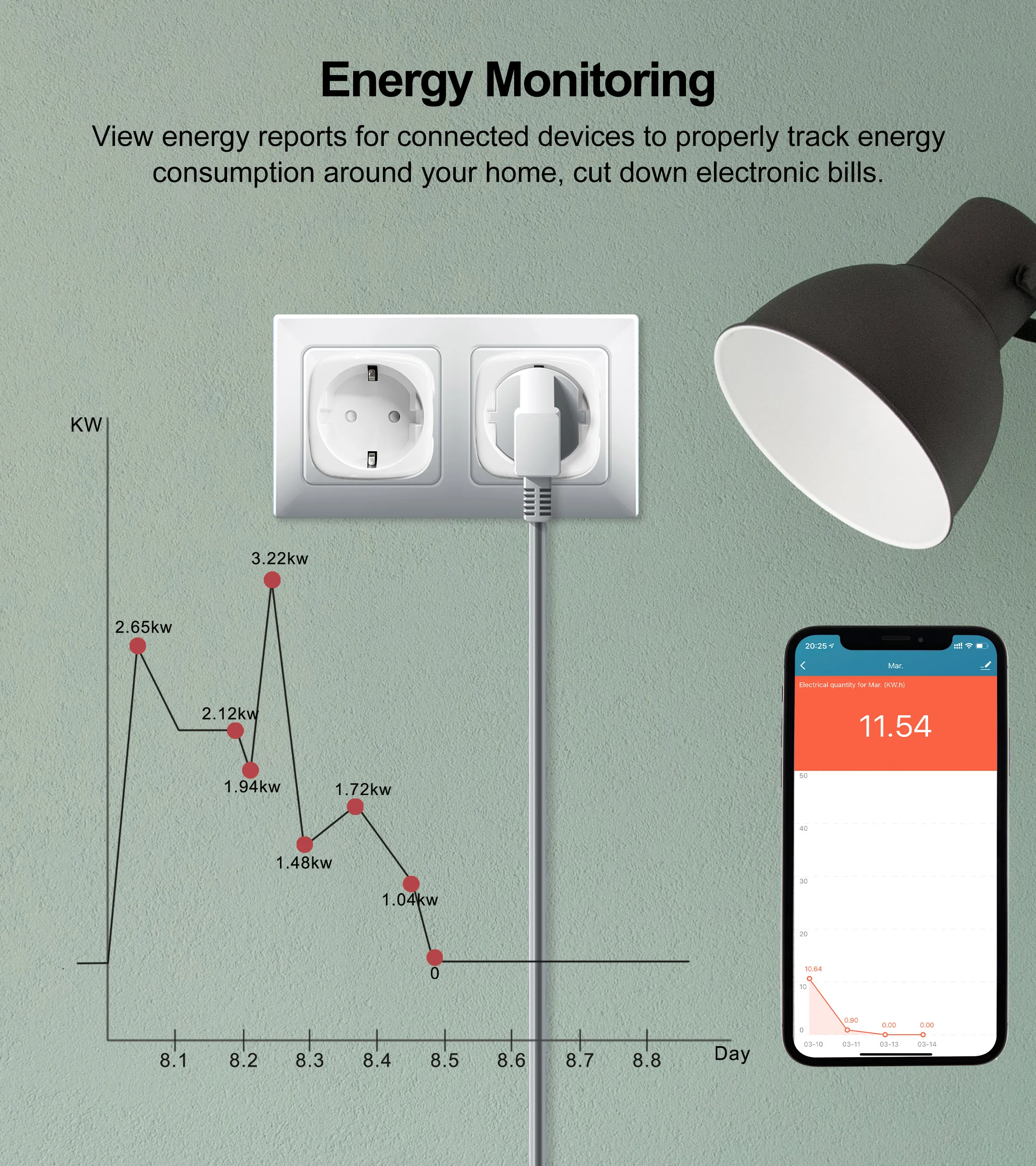 This smart power plug can provide a real-time power consumption meter, and you can know real-time reports on how much energy your appliances consume.