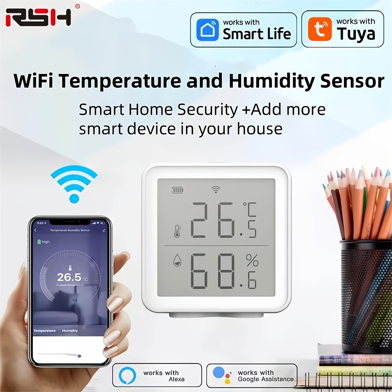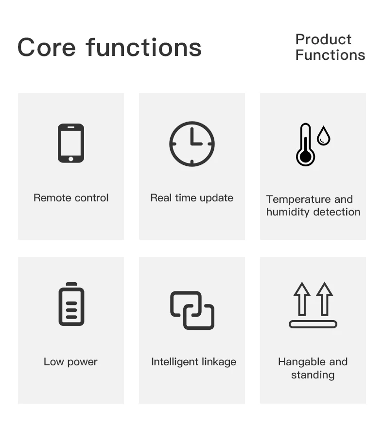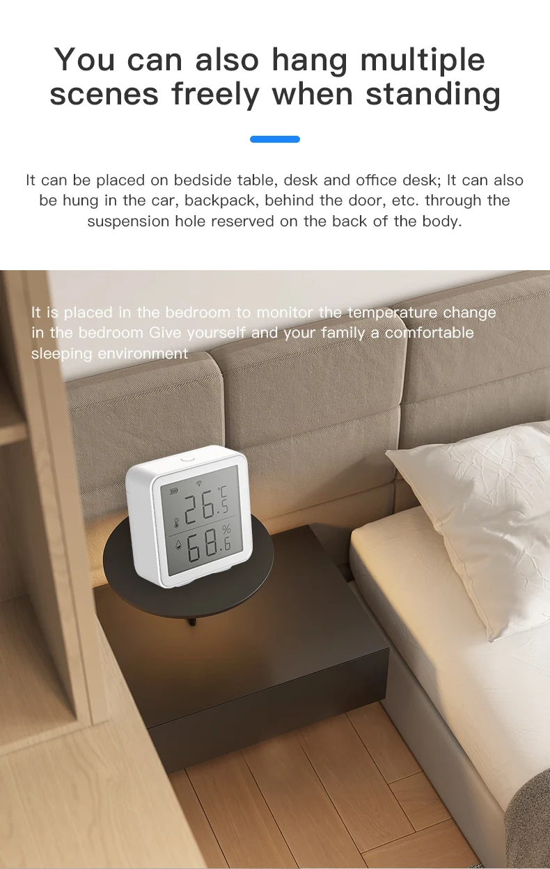 ● Third-party voice support.: The sensor supports Amazon Alexa, Google Home Asistant. You can check the current temperature and humidity by voice.