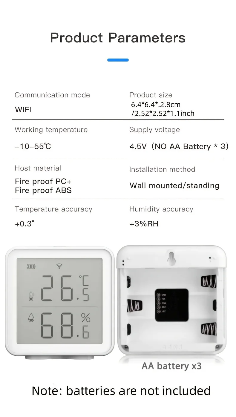 ● Real-time monitoring and recording: The sensor uses USB power supply. Compared with the battery version, the sensor will monitor the temperature and humidity in real time. The sensor will report when the temperature and humidity changes very little. You can view the changes in the value on the APP or display screen. Record the temperature and humidity changes on the APP, and use the graphics to show you.
