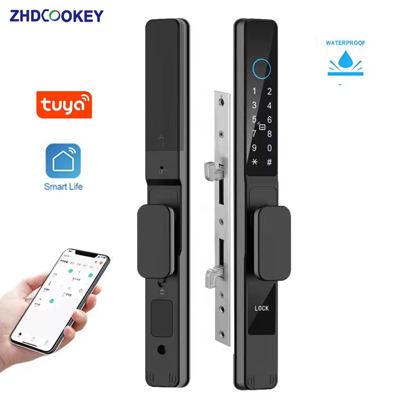 Tuya Wifi APP Waterproof Smart Fingerprint Lock Password Card Aluminum Sliding Door Lock For Outdoor Pull Push Sliding Door