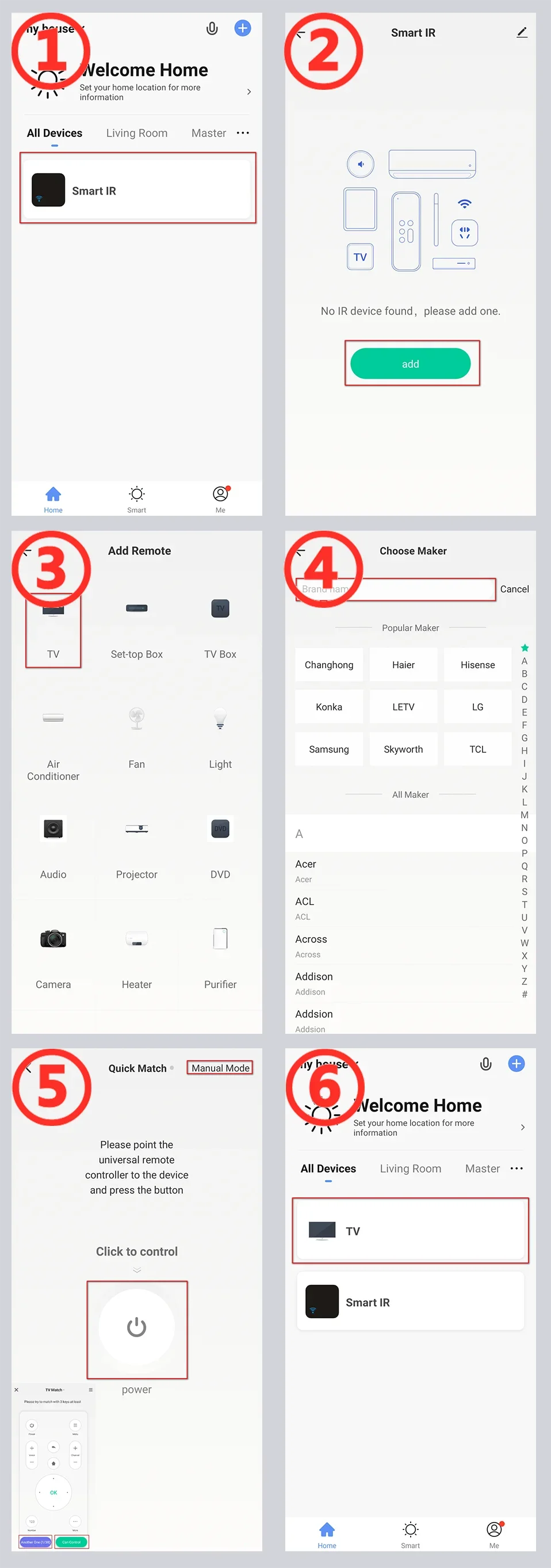 Customizing button and Copy function in the “Smart Life” App, if your home appliances brand is not in the list or not supported.