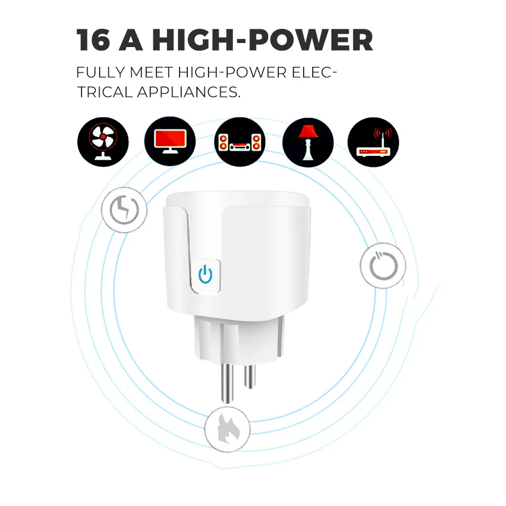 Tuya WiFi Smart Plug 16A/20A EU Smart Socket With Power Monitor Timing Smart Life Support Alexa Google Home Yandex SmartThings