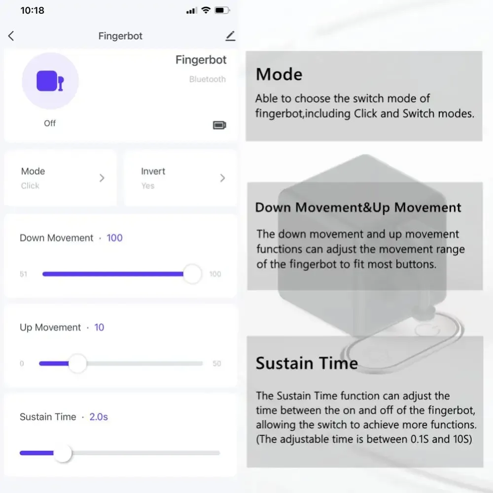 【Timed start】:You can set the time in the APP and start the fingerbot button at a regular time.