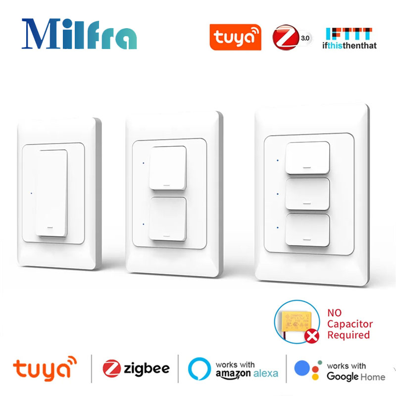 Tuya Zigbee Smart Wall Switch No / With Neutral Wire Optional Push Button Physical Light Switch Voice Control Google Home Alexa