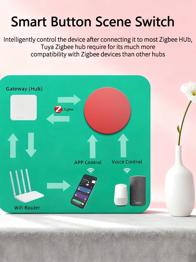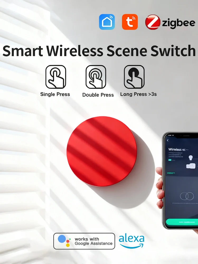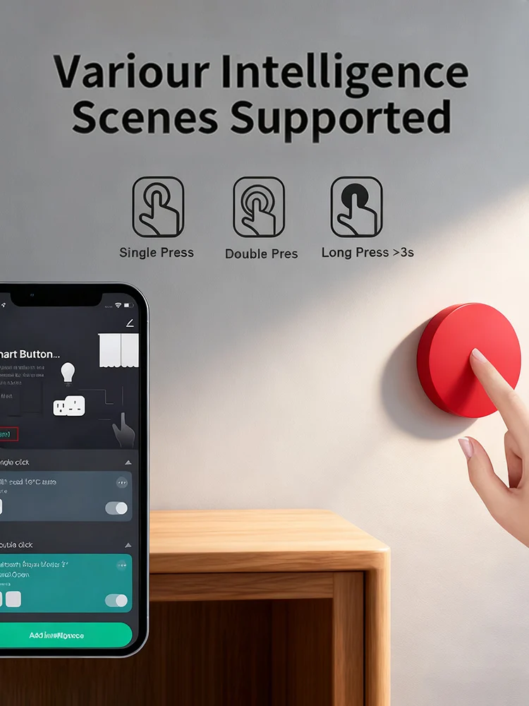 This smart button scene switch offers versatile control with three distinct actions: a single click activates the first scene, a double click triggers the second, and a press and hold activates the third. Each button can be configured for up to three different scenarios, providing flexible solutions for various home and office needs.