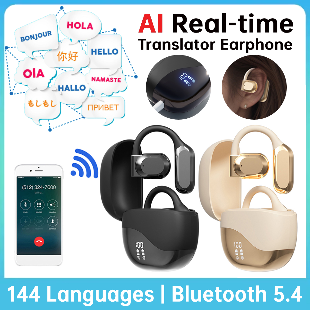 Feature: 1. Intelligent Translator Earbuds: Experience comfort and style with our intelligent translator earbuds. Designed with lightweight materials and an ergonomic ear-hook design, they ensure long-lasting wear without discomfort, making them perfect for all-day use. 2. Real Time AI Translator Earbuds: Stay powered throughout your day with our real time AI translator earbuds. Featuring an intelligent LED power display, low-power consumption chip, and a high-capacity lithium battery, these earbuds offer extended playtime and reliable performance. 3. Two-Way Voice Translator: Enjoy seamless connectivity with our two-way voice translator, equipped with Bluetooth-Compatible 5.4 technology. This ensures quick, stable connections for uninterrupted music streaming and clear voice calls, enhancing your communication experience. 4. Smart Voice Translator: Customize your audio experience with our smart voice translator, which delivers high-definition sound quality. Users can freely adjust sound settings to match personal preferences, ensuring an optimized auditory experience every time. 5. Translation Earphones: Enhance your communication with our versatile translation earphones. Not only do they provide translation, but they also serve as excellent devices for music streaming and phone calls, offering unmatched convenience and portability. Specification: